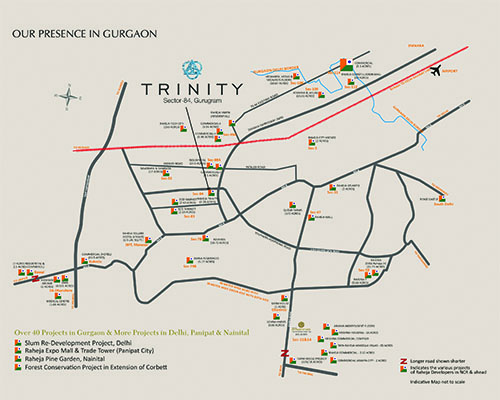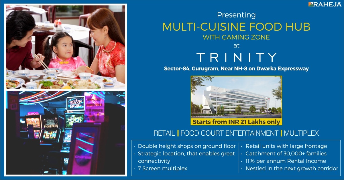 Raheja Trinity is located in Sector-84 Gurgaon, which is fast becoming a massive industrial hub. A number of posh and high-end residential projects are also being developed in the area. The affluent neighborhood opens a great avenue for retailers.